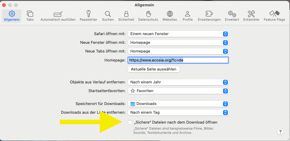 Verwendung des Safari-Webbrowsers beim Herunterladen